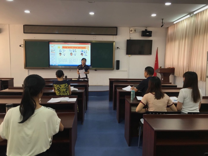 會議上,莫曉巧老師明確了英語小組合作模式課堂中的學(xué)習(xí)內(nèi)容、學(xué)習(xí)目標(biāo),強調(diào)要注重學(xué)習(xí)指導(dǎo)和回歸課堂學(xué)習(xí),培養(yǎng)學(xué)生的核心素養(yǎng)。根據(jù)英語科組對小組合作的理解與探討下,確定了適合學(xué)生的新授展示方式,在新授的詞匯課上實施小組合作模式,并遵循英語課堂教學(xué)要素。