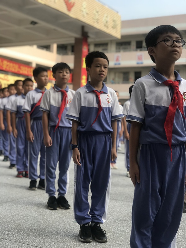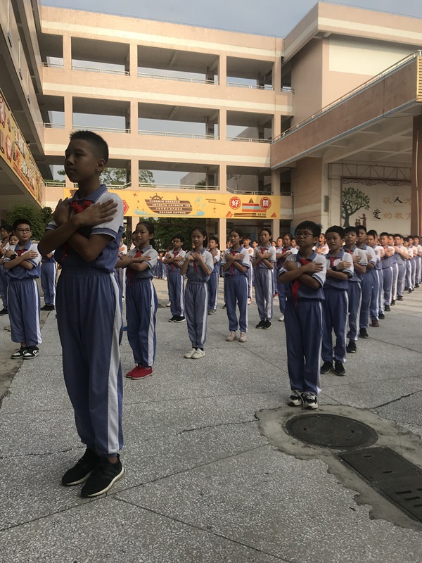首先,六(1)班全體學生以精神飽滿的狀態列隊而出,隨著學校大部隊來到一樓大堂。在快閃活動拍攝之前,全體學生以最甜美的笑容與鞠躬禮向老師們表達由衷的敬意。濃濃尊師意、款款愛生情為本次主題快閃活動增添了濃厚的感恩氣氛,師生情在心與心之間的交流中輕輕流露。