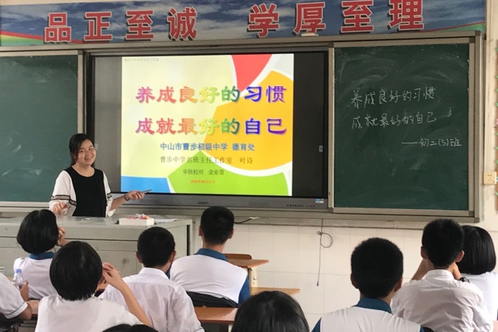 為了讓學生養成良好習慣,成就最好的自我,中山市曹步初級中學初二5班在2020年9月21日上午第二節開展了“養成良好習慣”的主題班會。
