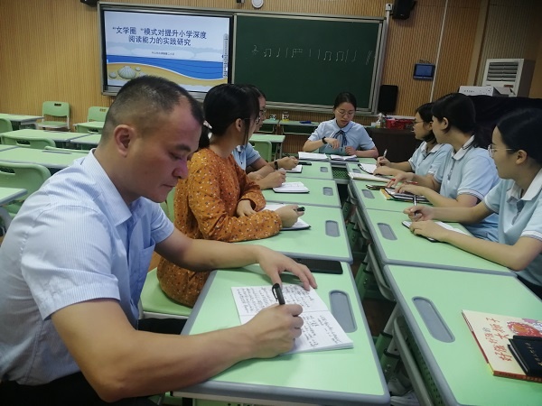 秉承著讓閱讀之光灑滿每間課室的理念,為切實提高小學生閱讀能力,特別是深度閱讀的能力,曹二小學邵華老師主持的課題《“文學圈”模式提升小學生深度閱讀實踐研究》第一次研討會在階梯式正式召開,曹二小學校長邱波、課題主持人邵華老師和其余課題成員參加了此次會議。