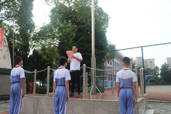 活動伊始,全校師生面向升旗臺升國旗,唱國歌,少先隊員向鮮紅的五星紅旗莊嚴敬禮。緊接著,海洲第二小學陳富權校長面向全校師生發表國旗下講話,陳富權校長圍繞“感恩、知國、報國、安全”四個方面,強調應常懷感恩之心,要主動了解偉大的祖國,為國家富強民族復興而努力學習,有強健的身體、有堅強的意志,以報效國家、傳承文明。最后,陳富權校長總結,八天漫長的假期,安全要放在首位。