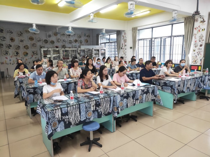 會議的開始孔國范老師就對本學年的美術中心教研組組長李桂萍老師進行了介紹,同時對中心教研組長的工作表示肯定,也期望新的中學組中心教研組長羅淑華老師能夠繼續帶領老師們再創佳績。接著,中小學中心教研組長李桂萍老師對上學年的工作進行了總結,對疫情期間參與制作網課的教師提出了表揚,對上學年喜獲佳績的師生表示肯定,李老師還把本學期的主要工作和活動安排作了詳細的講解,對本學期美術教研教學的方向有了很好的指引。最后是這次會議的重要內容,就是全體美術老師一起進行藝術測評的學習和探討。首先由李老師和大家解讀中山市中小學生美術素質測評細則,還組織大家觀看了尹少淳教授的視頻講座,讓大家從視頻中對藝術測評細則有更多認識和想法,看完視頻后李老師還把全鎮美術老師分成了六個組進行藝術測評的探討,鎮南小學每一位老師都積極參與其中,并且積極發言,在整個過程中老師們都是收獲滿滿。