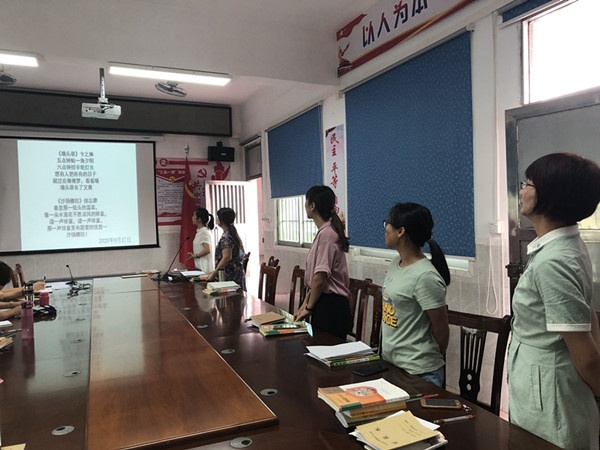 本次會議分為三個環節,第一環節是語文科組的常規活動時間,本次由四、五、六年級語文教師齊讀朗誦現代優美詩歌《墻頭草》、《沙揚娜拉》。在此之后,科組檢查并登記了,各語文教師的聽課情況。第二環節,黃老師認真研讀了《2020-2021學年度上學期古鎮鎮小學語文中心教研組工作計劃》、《2020-2021學年度上學期古鎮鎮中小學中華優秀傳統文化教育工作主要內容》,傳達了鎮教辦的工作精神。并且根據實際情況,將兩項任務,分別羅列了:課堂改革、課堂活動、學生活動等五條要點,帶領全體語文教師領悟上級文件的工作意見和重要內容。黃老師也對一些接下來開展的學生競賽活動做了簡單清晰地部署。第三環節,在朱主任的引領下,全體教師認真閱讀了《古鎮鎮小學教師教學常規管理工作規范》,并對“認真備課、認真上課、認真輔導”等三項內容,做了細致的解析和要求。緊接著朱主任的發言,袁校長做了總結。她指出,語文科組是擁有人數最多、力量最大的一個科組,所以要集中力量共同進步。按照鎮教辦的要求,做到心中有計劃,同時圍繞學校的實際情況,我們也要巧妙開展“同課同構活動”的學習方法探究活動、“優秀傳統文化活動與藝術節”相融合的計劃、加大語文特色的常規活動、利用教學反思和聽課評課促進課堂改革和教師進步等等建議。