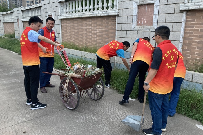 在此次活動中,每一位黨員志愿者和教師不辭辛苦,積極發揮黨員先鋒模范作用和奉獻精神,學校領導身先士卒,志愿者們不怕臟、不怕累,積極參與其中,認真清理校園周邊垃圾、雜草、堆積物。教師們用自己的實際行動為學校增添一份清新,一抹明亮,夕陽下滴滴汗水掛在她們自豪燦爛的臉上,顯得如珍珠般耀眼閃亮。清理后的街道煥然一新,整潔有序,為我校師生營造一個 “安全、健康、和諧、節約、勵志、篤學、尚美”的環境文化氛圍。