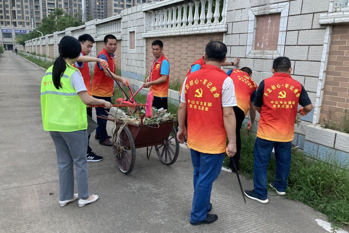 2020年9月28日下午,中山市曹步初級中學黨支部組織開展“迎國慶賀中秋”校園環境美化活動,校長年四揚同志帶領二十四名黨員志愿者及青年教師志愿者參與學校周邊環境清潔工作,利用放學期間,對學校周邊區域的垃圾、雜草進行了清理。