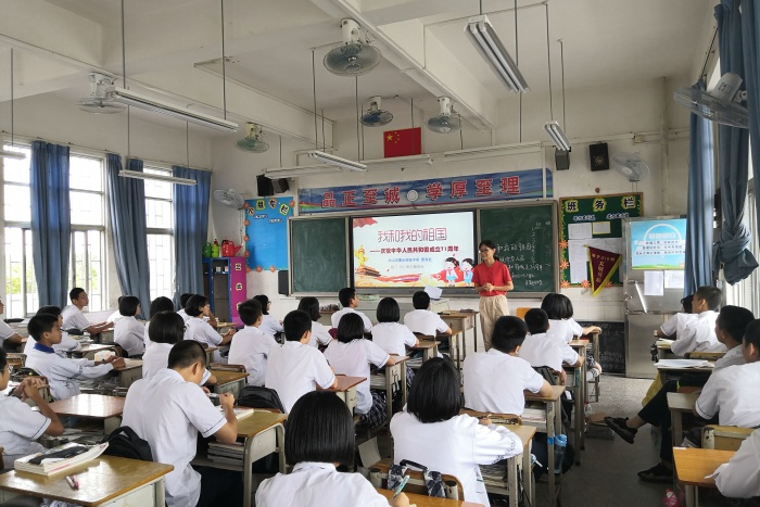 值祖國71華誕之際,曹步初級中學初三(5)班于2020年9月28日召開了以“愛國”為主題的班會活動。