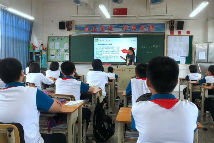 2020年9月28日上午第二節課,曹步初級中學初一(3)班開展了一節以“我和我的祖國”為主題的愛國主義班會活動。此次活動的目的是希望同學們要以作為一名中國人而自豪,謹記身上的責任,繼續弘揚愛國主義精神。