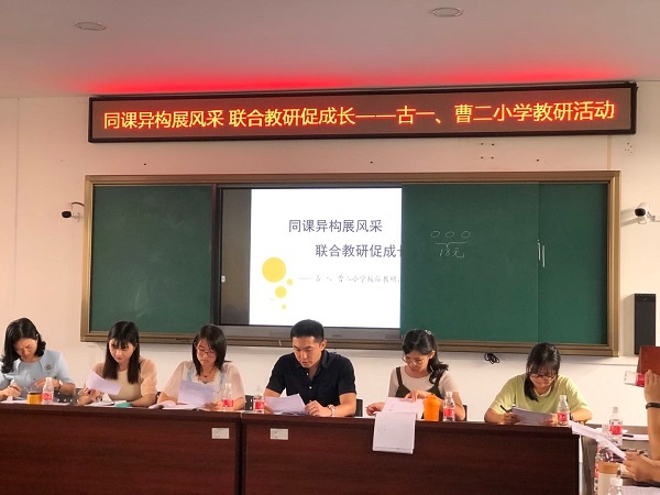 2020年9月30日下午,古一小學老師與曹二小學校江麗梅老師在古一小學分別展示了《歸一問題》課例。曹二小學全體數(shù)學科組均前往聽課。課后,聽課老師積極參與了議課。