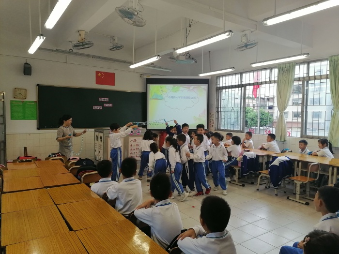 本次研討活動以李潔英老師執教的二年級課例《我們的新玩法》展開。在課堂中,李老師課通過探究“玩出新花樣”、“不同的玩具也可以組合起來玩”這兩大環節,先以小精靈邀請同學們參加游戲王國的游戲節,激發學生的學習的熱情高漲。出示小精靈帶來跳繩的新玩法,讓學生觀察,探索這些跳繩有哪些新花樣,怎樣玩。學生通過玩繩子游戲,感受跳繩新花樣帶來的樂趣。