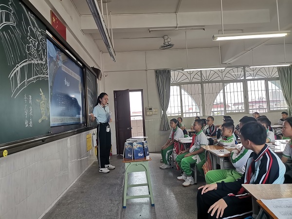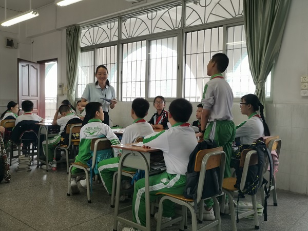 接著,第二部分是交流閱讀單的內(nèi)容,深入了解莊子的思想學(xué)派、分享莊子和惠子的故事、交流觀看完視頻《逍遙游》的感受。學(xué)生對新書的拆封迫切不已,每個小組輪流上臺領(lǐng)書,合影留念。