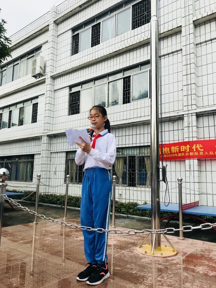 緊接著,陳美方副校長對全體師生作了熱情洋溢的講話,向同學們介紹了少先隊員行為標準,希望孩子們在少先隊懷抱中健康快樂成長,樂做好事、爭做好事,做一名光榮的少先隊員。