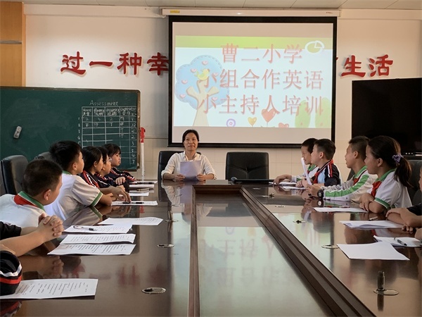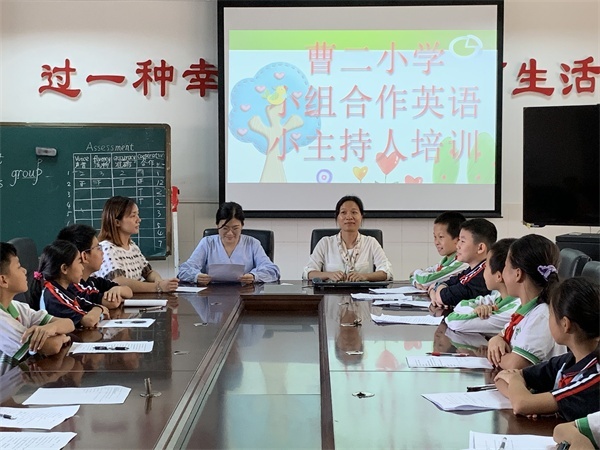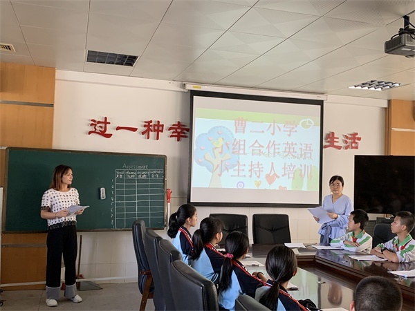 為了順利進行英語課的小組合作,得到更好的課堂效果,10月19日下午,曹二小學在會議室對英語小主持人進行加強培訓。培訓工作為蘇麗梅、林冬梅和劉璐三位老師負責。小主持人從四到六年級各班中選取英語口語水平、班級管理業務水平面的兩位同學。同學們各自帶好主持稿與筆記本參加了培訓活動。