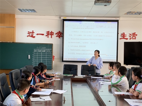 最后,由英語老師劉璐老師培訓,說明在課堂中各種加扣分的規則與現象。讓各主持人明確各個加分及扣分點,并進行現場模擬,讓小主持人對活動的加扣分有了更明確的認知。