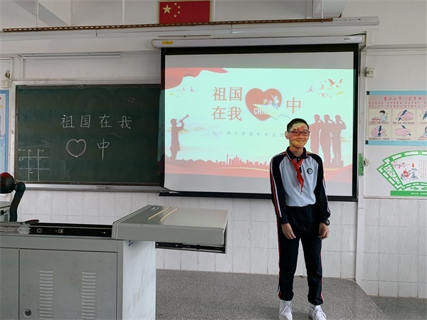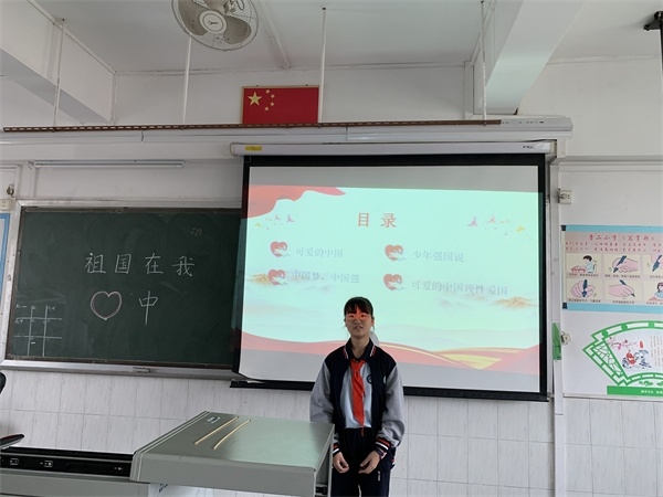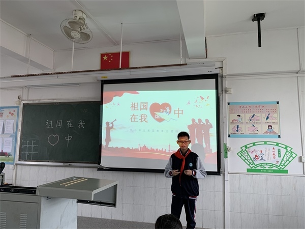 集隊、報數、出旗、唱隊歌等一系列程序后,由蘇麗梅老師激昂地說出活動主題:祖國在我心中,并深情地表達了自己的愛愛之情。她說:祖國是偉大的母親,用甘甜的乳汁養育了無數中華兒女;祖國又像個孩子那么可愛,值得無數兒女去呵護她,為之奮斗,甚至犧牲生命也心甘情愿,在所不惜。蘇老師的深情演說,很成功了激發起孩子們的愛國熱情。