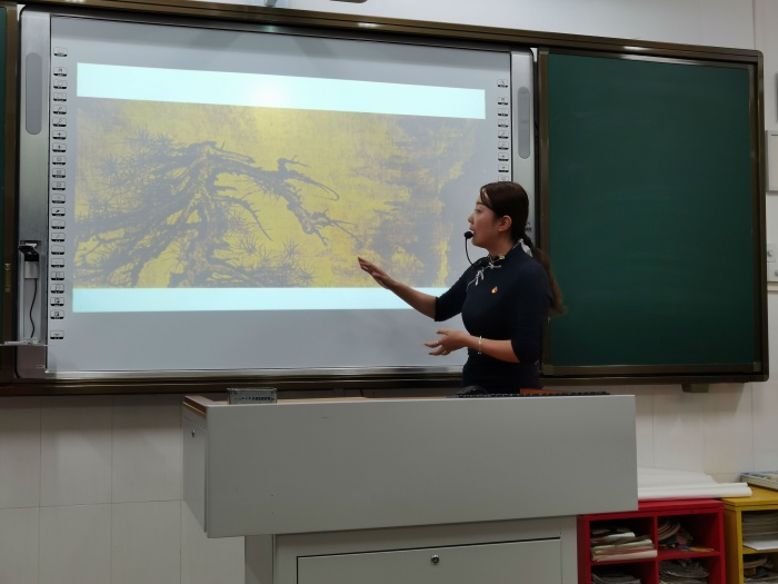 第二個環節,鎮南小學美術教師參加了海洲中學賈曉超老師主講的中國傳統山水畫教學主題講座。賈老師多年深入學習研究中國傳統山水畫,分享了很多寶貴的傳統山水畫的知識。從裝置藝術展示導入到了解中華優秀傳統文化,再到賞析豐富的山水畫圖片,這是一場精彩的視覺盛宴。賈老師還對教材中中國畫技法中合理與不合理的情況作了分析與對比,同時示范了中國傳統山水畫的專業技法,闡述了自己對水墨獨特的見解,讓大家受益頗多。