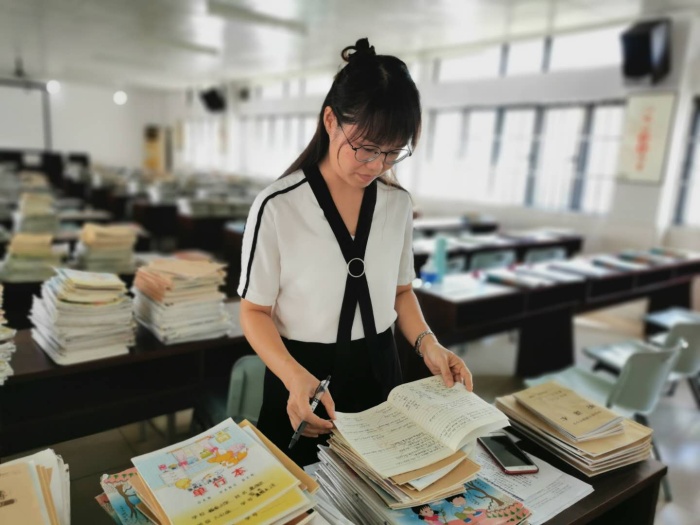 在這次檢查中英語組的老師本著認真負責的態度,一絲不茍,力求能做到最好。青年教師的手寫教案字跡清晰工整,目標明確,過程詳細。老教師則用在教材上標注的方式進行備課,一樣非常詳實認真。