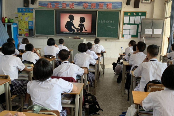 首先,廖老師為初二(4)班的同學(xué)進(jìn)行班會(huì)的引入——“什么是性侵害”?接著,班會(huì)講到了性侵有哪些危害。廖老師介紹了駭人聽(tīng)聞的數(shù)據(jù)和新聞,反映了防性侵的重要性,并告訴同學(xué)們性侵害會(huì)給未成年人帶來(lái)哪些危害。然后,廖老師給同學(xué)們看了性侵的危害和方法,說(shuō)明了如何自我保護(hù)防止性侵害:1.外出應(yīng)結(jié)伴而行;2.未經(jīng)家長(zhǎng)許可,不要在別人家留宿;3.任何人的的行為,只要讓你感到痛或不舒服,就立刻表示反抗,并盡快告訴家人和其他可信賴的成年人等等。老師那鏗鏘有力的話語(yǔ),目的就是讓同學(xué)們牢記防性侵。