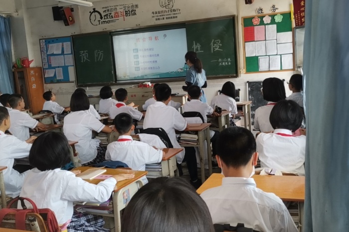 首先,一6班的班主任毛茜老師拋出了一個問題:什么是性侵犯?為了回答這個問題,老師給同學(xué)們播放了相關(guān)短片,總結(jié)了以下幾點:一,觸碰到隱秘的地方;二,看不健康的圖片或視頻;三,性侵害的人可能是自己親近或信任的人。同時老師告訴大家侵害未成年人犯罪的人,足足達到了3.25萬人。聽到這里,不少同學(xué)大吃一驚,在心里捏了一把冷汗。