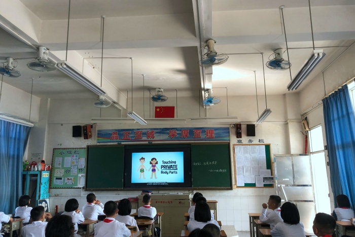 第三部分,黃老師給同學們看了一段如何預防性侵害的視頻,讓同學們更深入地了解了安全接觸和不安全接觸。