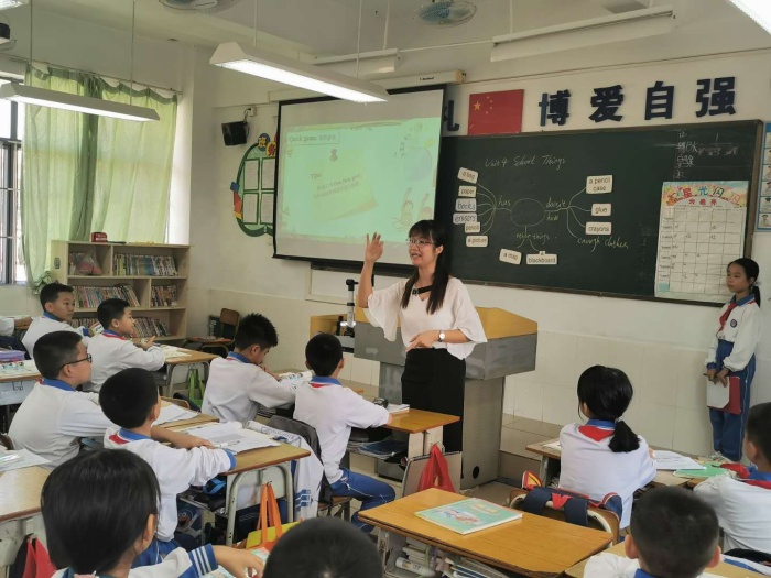 本次英語教研活動由英語科組長陳虹老師統籌與主持,活動的主題是探討小組合作在小學英語教學中的運用。本次研討活動主要包括課例展示和評課研討兩個議程。第一個議程由陳虹老師進行了小組合作的詞匯課課例展示,她執教的是廣東版《開心學英語》五年級上冊《Unit 4 School Things》。陳虹老師課前設計了《小組學習導學案》,讓學生進行了前置性學習,充分調動學生學習的自主性。在課堂上,陳虹老師反饋了學生們前置學習的情況。同時,老師還多次組織小組合作學習,通過小組的交流和匯報,讓學生輕松掌握本節課的重點和難點。精彩的課例展示讓聽課的教師們受益匪淺。