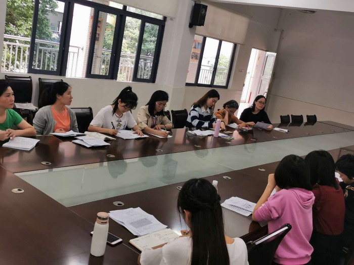 在第二個議程中,教師們進行了評課。大家肯定了課堂的設計思路和展現模式,同時也對本節課提出了一些設想。廖秋菊副校長結合本節課例,對本次活動的主題“小組合作在英語教學中的功能與運用”作了深入的分析與介紹,提出教師應該關注“語篇、整體呈現、小組合作”等教學要點,參加教研的教師們從中受到啟發,在精彩的點評中開闊了視野。