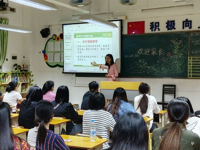 培訓結束后,各班主任帶家長回到自己的班級教室。班主任再次落實學校的安全、育人和教學要求,配合各科任老師從學習習慣、學習態度和學習狀態三方面介紹了學生的學習情況,加強了學校與家庭之間的溝通。