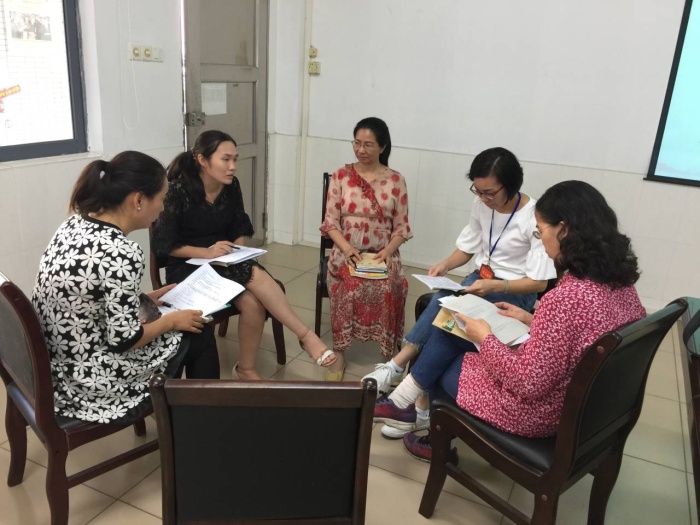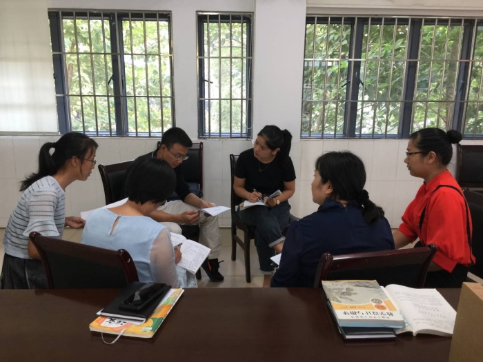 第二節(jié)課,全體語文教師集中教研室,繼續(xù)開展教研活動。在吳曉華老師的帶領(lǐng)下,全體語文教師誦讀和吟詠了詩歌《大風(fēng)歌》。林穎欣老師和占有武老師對上周外出學(xué)習(xí)的收獲進(jìn)行了交流和分享。林穎欣老師以《我的心砰砰跳》、《我來編童話》等課例為例,提出“寫作教學(xué)生活化”“關(guān)注寫作過程的指導(dǎo)”“教會學(xué)生點(diǎn)評”三個(gè)觀點(diǎn),讓教師們再次明確了寫作教學(xué)的重難點(diǎn),疏通了寫作教學(xué)的思路。占有武老師則結(jié)合相關(guān)課例,分享口語交際教學(xué)要注意“立足教材,不拘泥教材”“情景的創(chuàng)設(shè),突破難點(diǎn)”“言語導(dǎo)向生活實(shí)踐”“書面語輔助口語交際”等幾方面的內(nèi)容。