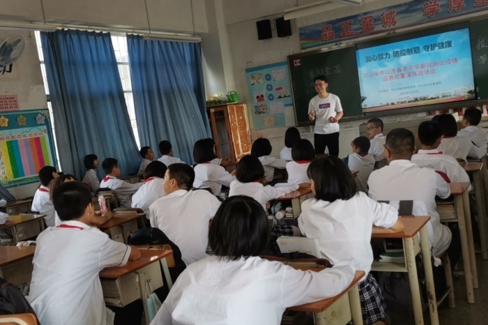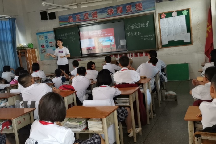 第二部分:盤老師開始講述起了疫情防控的重要性,并給同學們播放了一條視頻,演示了新冠肺炎疫情的應急處置。