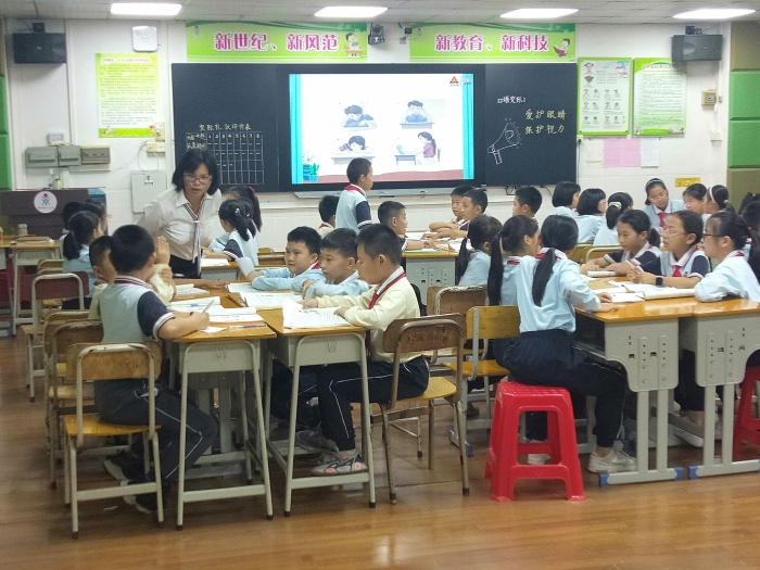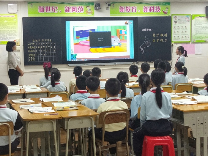 2020年11月4日下午第一節課,語文科組齊聚錄播室集中聽課。陳秀珠老師給大家帶來部編版語文四年級上冊第三單元口語交際《愛護眼睛,保護視力》的課例展示。