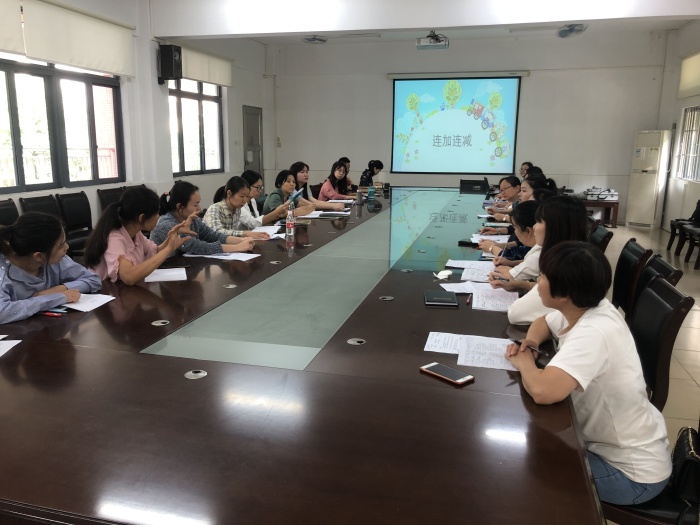 第二環節,備課團隊就這堂課的知識點在起因、學情與教材、教學目標、教學方法等方面進行闡述。一年級備課組長李春霞老師認為:連加連減這一知識點經常用來解決生活中的問題,它不但是對加減法含義的拓展,也是新課標提出的人人都能獲得必要的數學這一理念的體現。這節課通過小組合作,教師注重讓學生說,去表達,培養學生的觀察能力和表達能力。