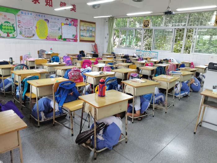在演練之前,班主任開展了“防震減災,安全疏散”的主題班會。通過主題班會課同學們學習了很多地震的防護知識。學校也強調了演練的流程和注意事項,要求每位學生提高認識,高度重視,演練時做到“服從安排,聽從指揮,嚴陣以待”,確保演練圓滿成功。