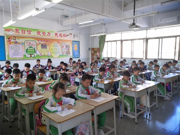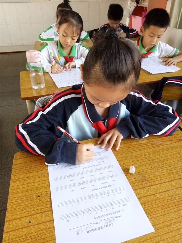 為規(guī)范同學(xué)們的書寫,比賽要求同學(xué)們用手寫體書寫每一個(gè)字母。在比賽過程中,同學(xué)們認(rèn)真對待,發(fā)揮出自己最好水平。監(jiān)考的老師還對同學(xué)們寫字的正確坐姿和書寫的正確方法進(jìn)行提醒監(jiān)督,以便養(yǎng)成良好的書寫習(xí)慣。
