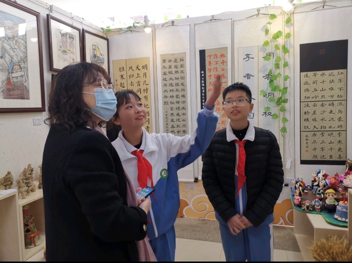 本次少年宮藝術(shù)成果展覽主要以海洲第二小學(xué)的書(shū)法、國(guó)畫(huà)作品,鎮(zhèn)南小學(xué)的陶藝作品,曹二小學(xué)的國(guó)畫(huà)、黏土作品為主。海洲第二小學(xué)的倫潔玲同學(xué)、覃樂(lè)樂(lè)同學(xué)為參觀的領(lǐng)導(dǎo)來(lái)賓詳細(xì)介紹展出的作品。展出獲得了省、市各級(jí)領(lǐng)導(dǎo)的肯定和好評(píng)。