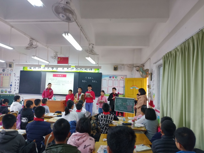 為了讓跟崗團隊體驗“小組合作課改模式”,感受課改課堂的活力,12月16號上午廖利老師在四(2)班執教《對策問題——田忌賽馬》一課。廖老師讓同學們在學中玩、玩中學,通過比大小的游戲讓學生體會小牌也能戰勝大牌,激發學生探究獲勝策略的興趣。課堂中,廖老師還設置了小組合作解決問題的環節,讓小組商討解決辦法然后上臺進行匯報。即使中年級的學生還不夠高年級學生組織語言的能力強、對小組匯報的流程不夠熟悉,但廖老師還是耐心引導,培養他們的合作能力,自主學習能力。