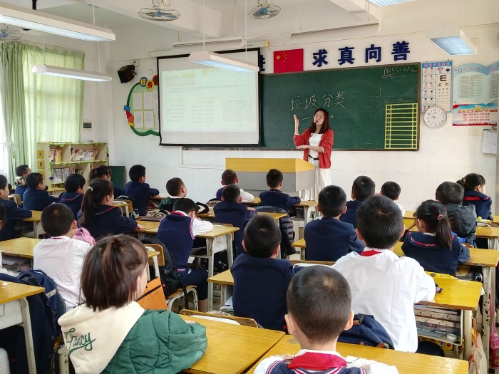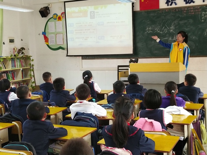 為了營造良好的地球環境,加強同學們垃圾分類回收意識,讓垃圾分類理念深入人心,引導全校師生正確投放垃圾,同時幫助“地球媽媽”減負,并促進學校切實有效做好垃圾分類宣傳工作。12月28日上午,古鎮鎮鎮南小學中年級的全體班級在教室里召開了題為“垃圾分類”的主題班會。中年級全體班主任身穿“中山志愿者”服裝,在班會課上,老師實施了豐富多樣的活動,讓同學們明白“垃圾分類”的重要性。
