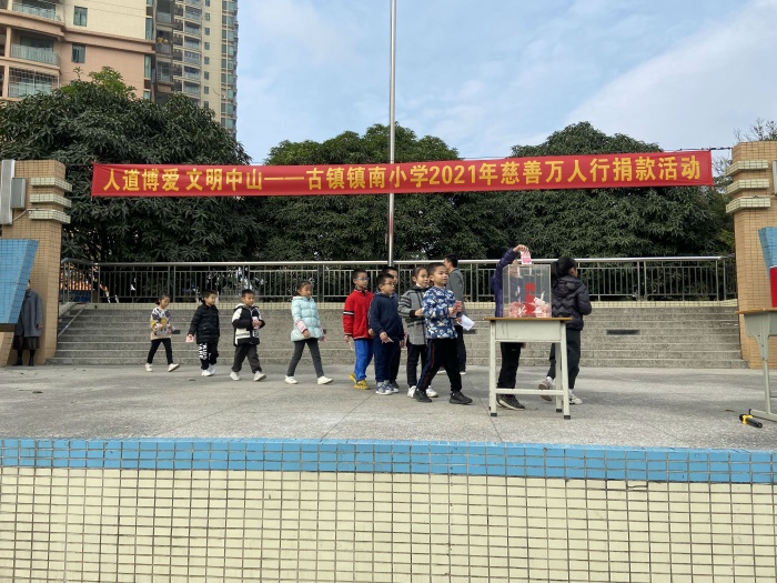 為發揚慈善博愛的傳統,弘揚無私奉獻的精神,促進社會各項事業的進步,建設幸福和美的中國燈飾之都。中山市古鎮鎮紅十字會、古鎮慈善會向全鎮人民發出主題為“人道博愛,文明中山——為新古鎮人民醫院建設添磚加瓦”的公益籌款活動倡議,鎮南小學積極響應號召,于12月24日進行了慈善萬人行捐款活動。