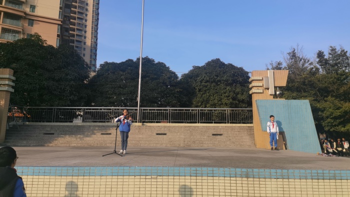 國旗下講話后,五4班林芷妍同學(xué)獻(xiàn)上小提琴演奏《我和我的祖國》,表演專業(yè)性極強(qiáng),林同學(xué)深情款款的演繹,使全體師生沉浸其中,被深情的藝術(shù)魅力所折服,深情的音義加強(qiáng)了同學(xué)們對祖國母親的熱愛,使愛國之心春風(fēng)化雨般灑落在鎮(zhèn)南學(xué)子的心間。林芷妍同學(xué)強(qiáng)調(diào),祖國是和諧的家園,每個人都享受著幸福和溫暖。鎮(zhèn)南學(xué)子要用自己的努力來忠心地?zé)釔鬯⒄媲榈鼗貓?bào)她。要像大雁一樣,抱著遠(yuǎn)大的理想,叼著明珠,飛向遠(yuǎn)方,為實(shí)現(xiàn)中華民族的偉大復(fù)興,不斷向前。
