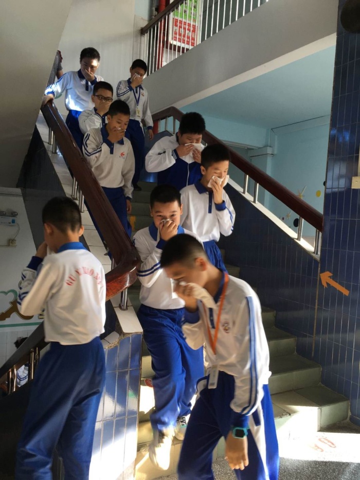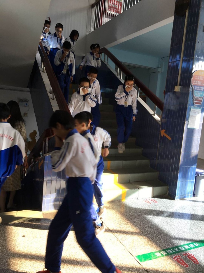 30號上午,六1班在積極參加了學校的消防演練。在大課間的時候,火災警笛一拉響,六(1)班的同學們迅速關掉電源,用紙巾學生捂住口鼻,彎腰下樓,有序地撤離教室,沒有吵鬧,沒有慌張,井然有序。之所以同學們能夠有出色的表現,這與古一小學經常舉行消防演練,安全防范措施已了然于胸的結果。