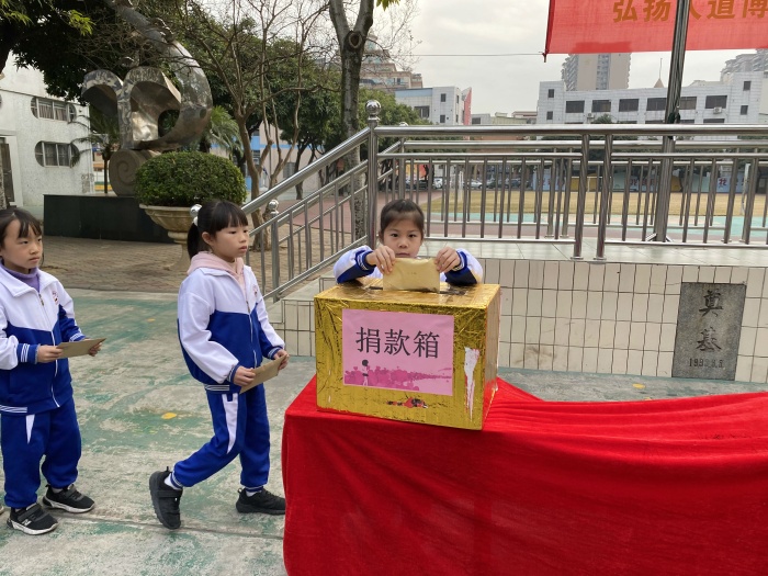一年一度的“慈善萬人行”捐款活動又開始了。為發揚慈善博愛的傳統,弘揚無私奉獻的精神,2020年12月23日早上,古一小學舉行了“慈善萬人行”捐款活動,二(3)班晨曦班學生積極參與。雖然天氣寒冷,但卻抵擋不住老師和同學們獻愛心的熱情,一股股暖流在校園中涌動。