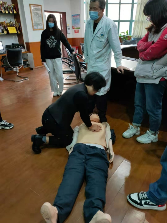 參加培訓的一位同學說:“今天學習心肺復蘇,讓自己多一項急救技能,說不定以后能幫助到別人,救人一命。”