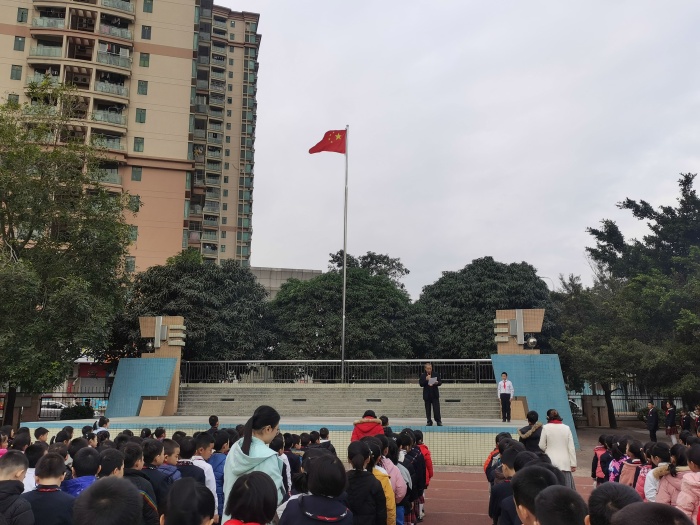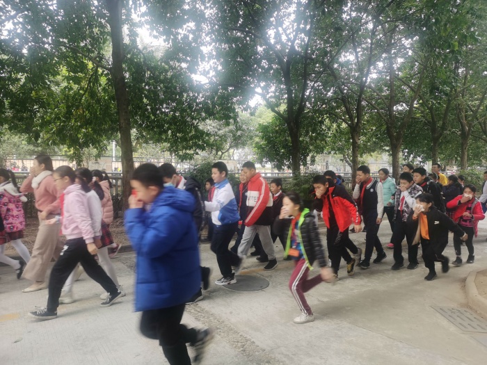 隨著應(yīng)急警報鈴聲的響起,演練正式開始。各年級負(fù)責(zé)人及各樓層值日老師第一時間迅速到崗,協(xié)助學(xué)生隊伍快速、有序的撤離,各任課教師、班主任正確指導(dǎo)學(xué)生,都能按要求彎腰,雙手捂嘴,跟著隊伍迅速撤離到安全的位置。從警報響起到兩千余名師生全部撤退到操場,總共用時不超過十分鐘。整個過程,師生都能做到有秩序、行動快速,配合默契,沒有出現(xiàn)混亂的場面。然后,本次消防演練總指揮梁耀倫副校長講進(jìn)行了以“消防安全”為主題的講話,梁副校長給同學(xué)們提出了六點建議,呼吁大家增強防范意識,提升自我保護(hù)能力,關(guān)注消防安全,關(guān)愛生命。
