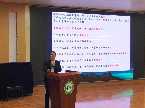 上午分享的第一位老師是曹二小學副校長李培新,李副校長分享的主題是《教師的個人發展和規劃》。李副校長首先感謝各位領導和老師的關照,體會到曹二小學是一個溫暖的大家庭,能來到曹二小學工作感到非常幸運。接著,李副校長結合參與教師職稱評審的工作經歷,詳細地分析了中小學中高級職稱評審條件,勉勵在座的年輕教師做好教師個人規劃,提前準備。接著,曹二小學副校長鄭以漩以《做美的教育的踐行者》為主題,結合她在高校的工作經歷和音樂教學經驗,從語言美,行為美、著裝美等多方面鼓勵老師們做美的教育的踐行者。