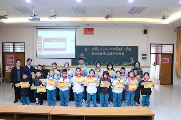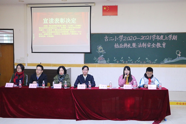 光陰似箭,時光如梭。轉眼間,繁忙緊張的一學期就要悄然離去,孩子們也迎來了期盼已久的寒假生活。2021年1月15日上午,古鎮鎮古二小學舉行了2020學年度上學期結業典禮暨法制安全教育活動,為一個學期的學習生活畫上完美的句號。