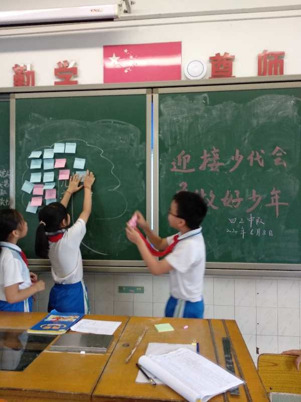 主題班會中,班主任首先跟隊員們介紹了少代會的知識,促進隊員們對少代會的了解;其次,班主任帶著隊員們重溫了少先隊知識,深化隊員們對“六知六會一做”的了解;最后,班主任分享了戰疫先鋒事件,鼓勵學生學習先鋒們的 “逆行”精神,努力學習,用優秀的學習成績來回報祖國。少先隊員們也結合生活感悟,講述鮮活青年榜樣在抗擊疫情過程中的奮進姿態和擔當精神,立志向他們學習。