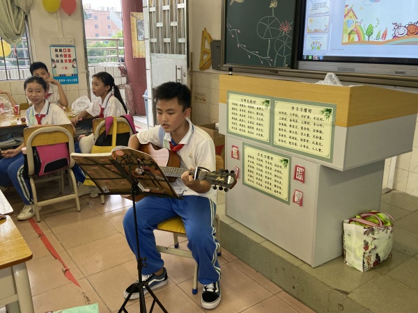 游戲最能激發“快樂”因子,在游戲中,孩子們燦爛的笑臉是對活動最真的詮釋。教室的孩子們唱起了歡快的歌;玩起了“聽音傳球”和“你說我猜”;有的進行了“擊鼓傳花”;還組織了才藝表演。這些精心策劃的活動都為孩子們創造了展現機會。