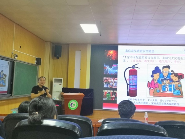 講座中,邱波校長向教師們細致講解了各崗位所涉及的相關安全知識,介紹了滅火器等消防器材的原理及使用、逃生和急救知識等。講座分為兩個模塊,首先是學校消防安全。學校各室場的消防安全要定期詳細檢查,發現問題要及時處理,牢固樹立“安全第一”的思想,把學校安全工作放在各項工作的首位,建立學校安全檔案,把安全工作落到實處,讓學生有一個安全的環境學習生活。其次是家庭常見消防安全隱患:電器設施、設備老化,使用不當帶來的隱患;燃氣使用的注意事項;火情緊急情況的處置;火災應急疏散常識;家庭必備消防器材等。本次講座結合了大量觸目驚心的現場事故案例,讓每位教師深刻感受到火災的無情及掌握消防知識的重要性。
