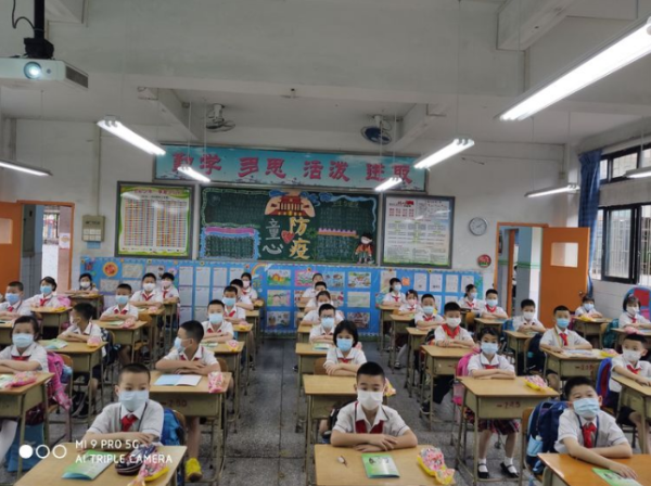復學第一天的課程以“防疫、健康、愛國”為主題。上午,班主任老師首先開展了“防疫衛生一日常規教育”,落實每一項在校防疫細則;接著觀看了市教體局錄制的“天使歸來,英雄開講”的復學第一課,疫情阻擊戰中涌現出的英雄,為孩子們樹立了奮斗的榜樣,也是孩子們應該學習的楷模。下午,以“凝聚磅礴力量,攜手抗擊疫情”“你笑起來真好看”“防疫知識大比拼”為專題的心理健康教育,讓孩子們樹立積極的生活態度,對自己未來的學習、生活充滿信心。