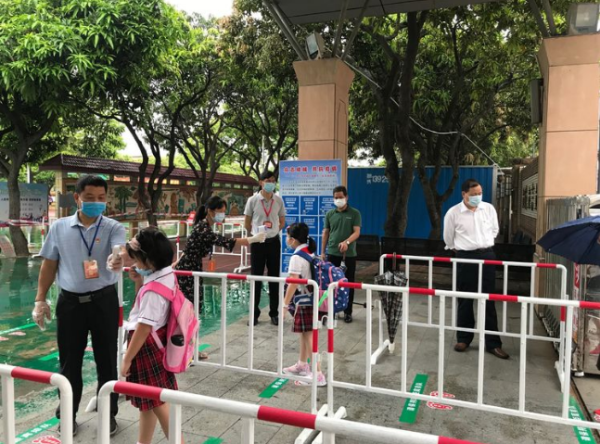 “老師好。”“同學你好,歡迎回到學校。”5月25日早上,冒著蒙蒙細雨,古一小學1至3年級的學生回到闊別已久的校園,正式返校復學。他們精神抖擻,神采奕奕,自信大方地走進校園,似乎對新學期滿懷期待,準備好迎接新學期的學習生活。
