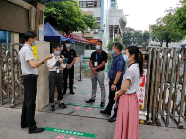上午七點二十分,學校迎來了中山市委防控督查組的安全檢查,市生態局冼景文副科長,衛健局何淑鎂科員,教體局馮玉生等來到學校視察工作,隨行的還有古鎮鎮教育事務指導中心鄧秋元主任,楊紅衛校長陪同上級領導進行視察工作,并介紹學校的聯防聯控措施,通過健全管理模式、升級防控手段、扎實做好復學防疫管控措施,嚴格落實防疫措施,做實做細各項準備工作,穩步推動復學復課安全有序、順暢進行,以萬全準備確保開學安全有序。