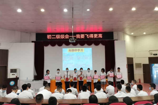 在級會過程中,周級長首先向同學們說在復學前后,老師所做出的貢獻,以及最先返校的初三級的學生,也在最先返校兩周給出了自己在家學習的優異的成果,鼓勵同學們向初三的師兄師姐們學習,并珍惜本次返學學習的機會。為了讓初二級的同學們受到榜樣的引領,本次級會上對最敢攻尖克難和最具潛力的同學進行表彰。其中初二(3)班的區杰斌作為最敢攻尖克難的代表的發言,他分享自己的學習上的小技巧:一是提前做預習,二是不會的問題可以問同學和老師,三是其他同學不會的樂于幫助他人,因為在教別人的時候,也是將知識在自己頭腦中溫習一遍。隨后初二(7)班的賀曉璐同學也和分享了自己的學習上的一些小方法。然后,周級長在學生平時的日常規范中,提示并向同學時間是可以捉住的,關鍵是否自己用心去留意,面臨生地會考,同學們更應抓住自己在學學習的每一分每一秒,讓它發揮最大的作用。最后凡毅副校長用一句話勉勵初二年級的學生,今天為明天有質量的生活而努力!